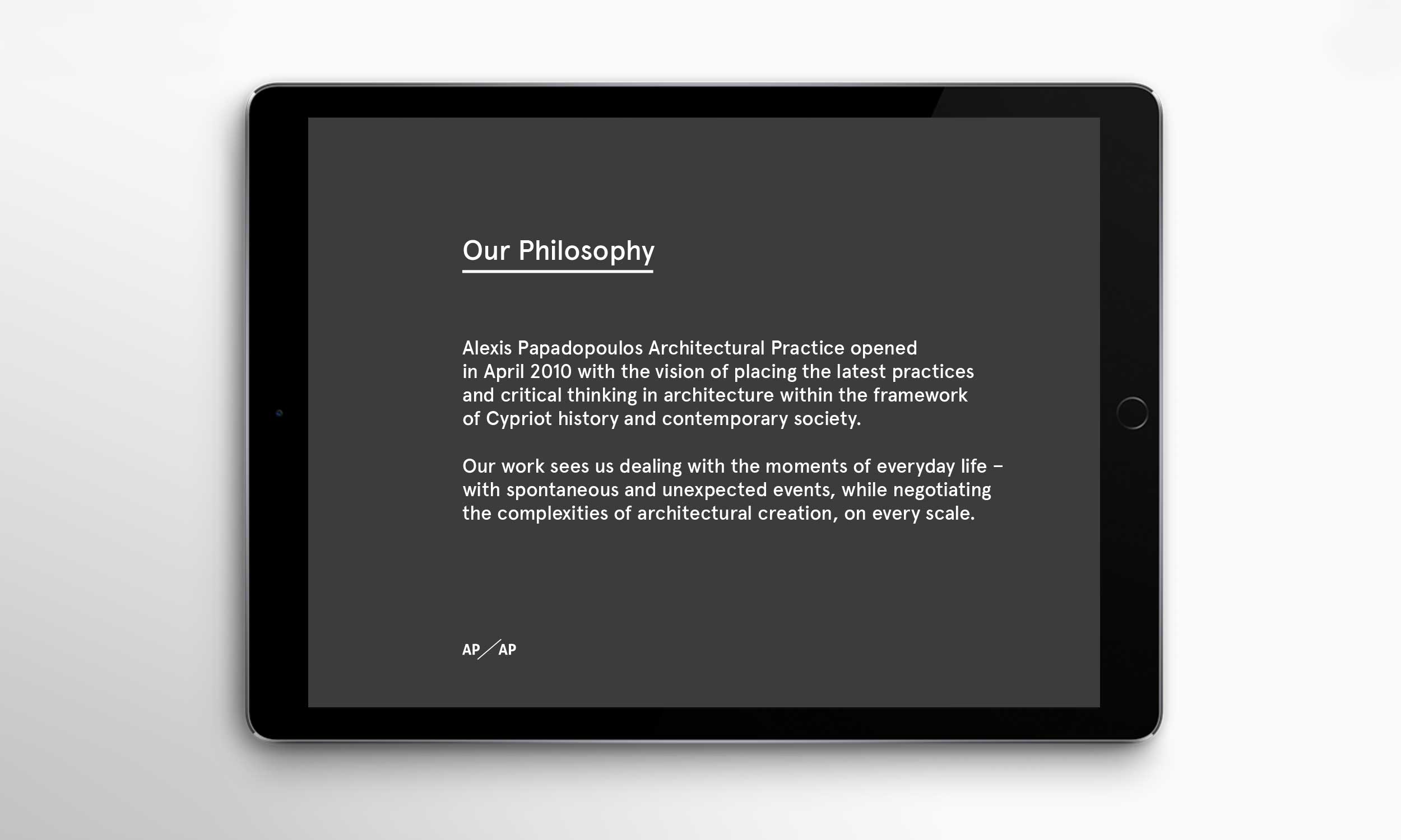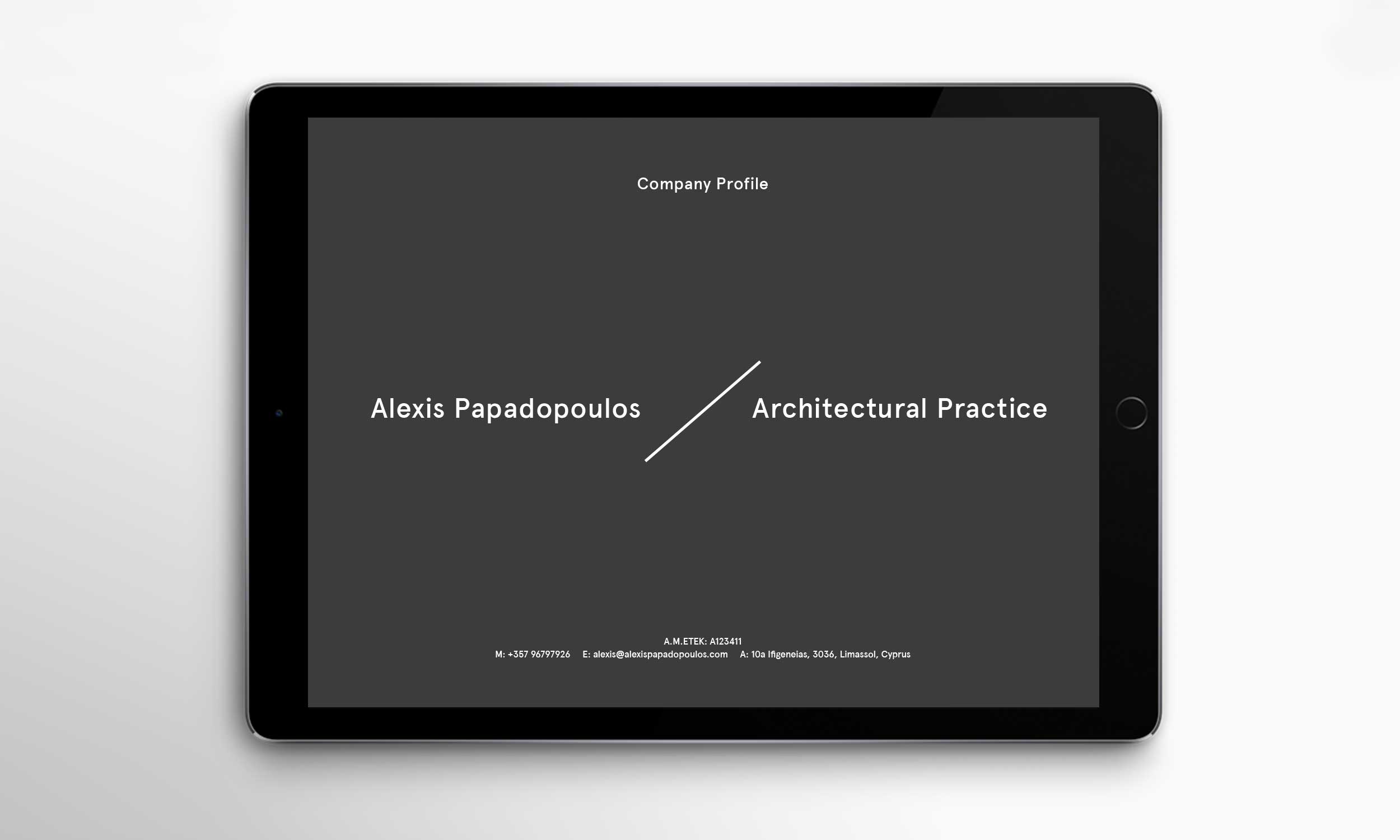 Identity design, branding, company profile and website for Alexis Papadopoulos Architectural Practice.